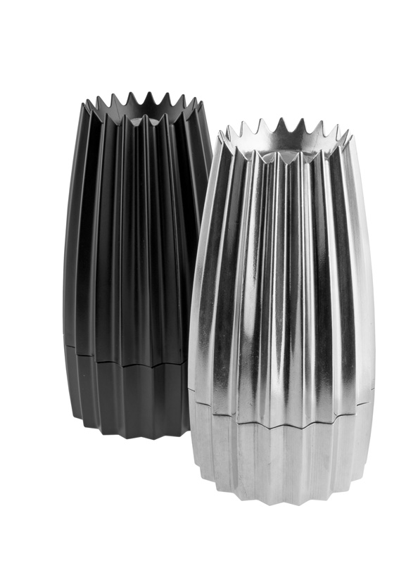 A celebration of the dining table and all those tools that enhance the pleasure of sharing and enjoying good food: this was the design concept for the “Grind” salt, pepper and spice mill by William Alsop and Federico Grazzini. Not simply a gadget for the table where meals are eaten, but an object that is part of an essential experience. The designers have also introduced a small variation in the usual structure of this tool: when the Pepper mill is not being used, it sits with the grinding mechanism facing upward. The grinder is thus clearly on display, stylishly framed by the distinctive design of the body of the Salt mill. It is a functionally important detail as, after use, it allows “Grind” to be set down on the table without scattering any ground spice residue on the table. Characteristics / Suggested use. The body of the pepper mill is made of die-cast aluminium with an interior in nylon, a material particularly suited to contact with foodstuffs It features a ceramic grinding wheel, the ideal choice for grinding any kind of spice. The grinding wheel is housed in the top part of the pepper mill to avoid dirtying the surface on which the object is set down after use Easy to use, it allows different finenesses of grinding to suit personal preference and various types of spice: the part housing the grinding wheel can be twisted clockwise for finer grinding, or anti-clockwise for more coarsely ground spices Easy to fill. Simply turn the grinder upside down and remove the rotor in order to top up the container with spices. To close, fit the rotor back onto the central pin and then press down lightly until it clicks back into place Available in two versions: aluminium and black painted aluminium Clean the pepper mill with a soft cloth; do not use abrasive detergents, which could damage the finish Expressive design for an everyday object that becomes a stylish, essential accessory to be displayed on the table Ideal for those who like to spice up their food, enjoying the fragrant aroma of freshly ground spices.