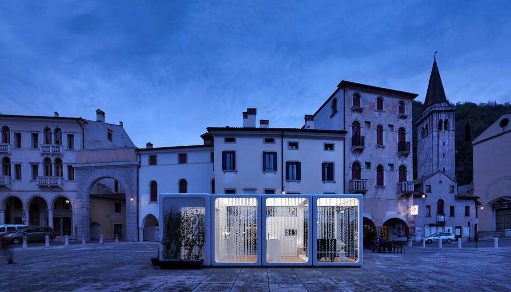 We designed NOMAAD as an evolutionary, prefabricated, modular micro-living system that offers high quality design, adaptability, and affordability to anyone, anywhere. NOMAAD Living, a four module micro-living unit, premiered in April 2018 in Vittorio Veneto, Italy. The 280 sf Living unit is composed of specialized modules for bathroom with shower and HVAC, bedroom, kitchen, and living area. The unit arrives at the site with 10 ft ceilings, fully finished interiors, factory insulated walls, LED lights and smart system controls. NOMAAD is fully customizable with numerous material options for floor and wall panel finishes, as well as off-grid fixture upgrades, solar panels, green roof options, etc.. Nomaad Living is part of a suite of products under the NOMAAD name. NOMAAD comes in 70 sf modules that allow ease of transportation and access to sites where larger containers cannot be installed. The system requires minimal on-site assembly for a short installation time and produces limited construction waste. Aluminum framing gives the modules a rigidity to withstand high levels of torsion, while keeping the weight light.