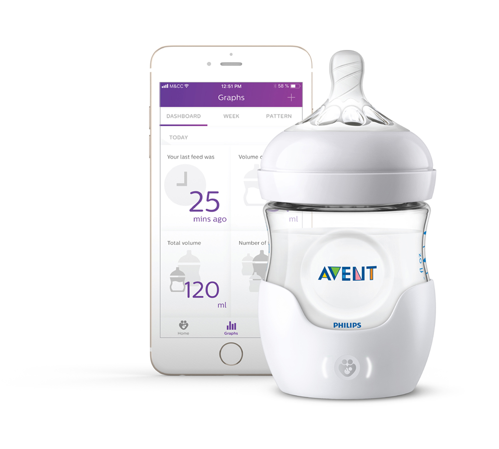 This baby bottle is a combination of a 125 ml bottle and an intelligent sleeve. The sleeve is activated via simple one-button interaction and records quantity, time, duration and interruptions of a bottle-feed. The data are transmitted to the smart baby bottle app and automatically archived. The sleeve is light, pleasant to hold thanks to soft-touch materials and also easy to remove.