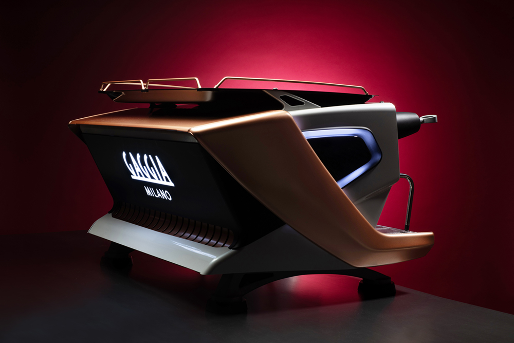 La Reale is available in two versions, copper/white and copper/grey. Designer Marco Bonetto set out, in this machine, to reflect the style that has become his trademark in the field of automotive design. His goal was to enhance the reliability of La Reale’s parts and materials, and to ensure its ability to withstand the chaotic working pace of the busy barista.