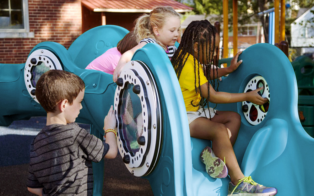 Playgrounds today are often challenged to provide fun and enriching play experiences for children with physical or cognitive limitations. Many climbers and platform play systems are thrilling for some children, but pose barriers for others. The limited selection of adaptive playground equipment available today isn’t fun and engaging for many children, leading to self-segregated play.