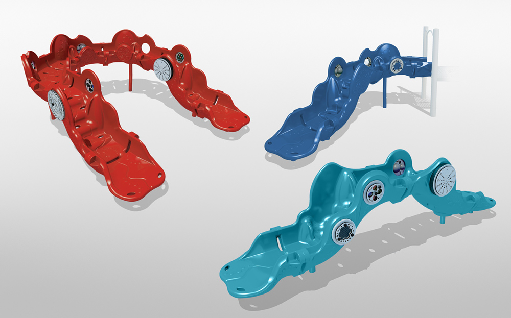 The Sensory Wave Climber is the industry’s first playground climber that allows children of all abilities to enjoy the benefits of climbing while enhancing sensory development. Strategically placed molded-in grips, hand holds and transfer area provide additional support for children of all abilities to maneuver through the curvy climber. The Sensory Wave Climber is a customizable system that can be scaled for different play spaces and budgets. It can be configured as a free-standing climber in various shapes and sizes, or used to link or transfer between other play systems. With a wide array of auditory, visual and tactile interactive sensory modules that can be mixed and matched to customize the climber, it provides a sensory-rich play experience for all.