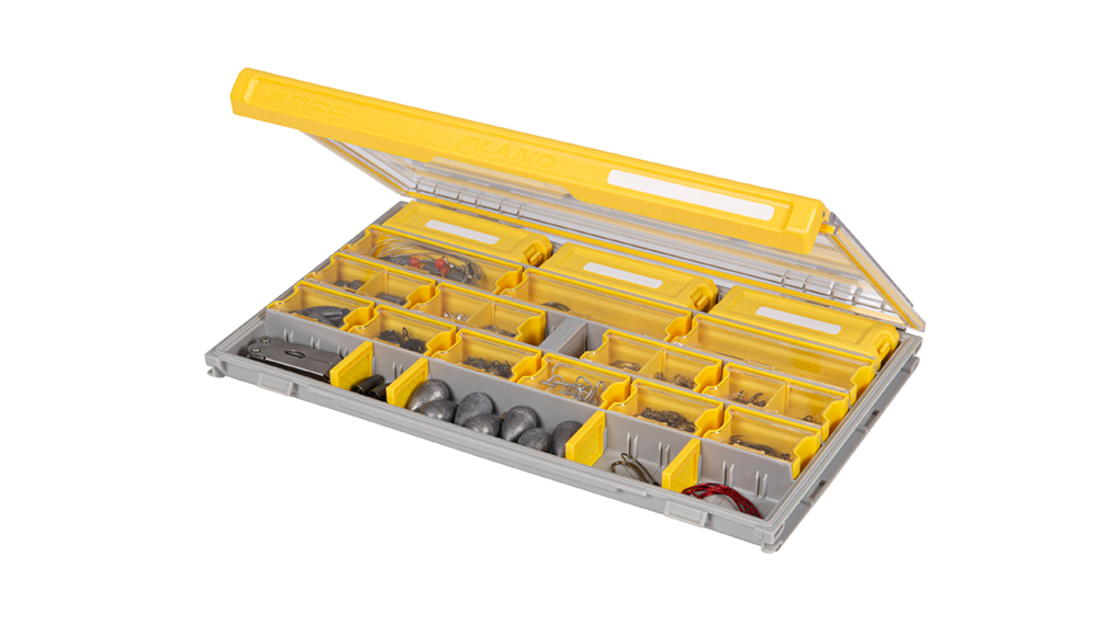 To reduce the time it takes to find the right tackle, every box has a crystal-clear lid and oversized latch that can be opened with one hand. An integrated labeling system facilitates tackle identification when the boxes are stacked in a bag or locker.