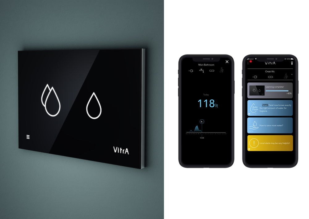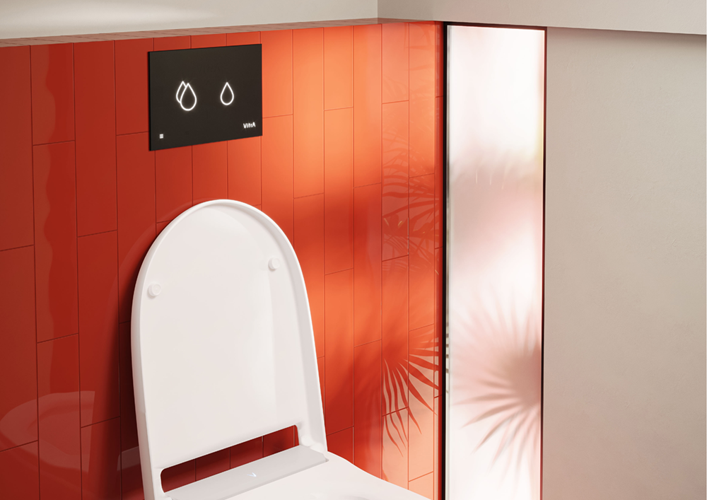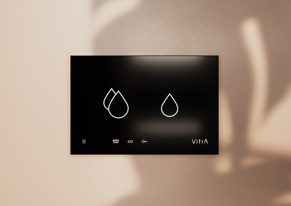 An essential element in the VitrA bathroom appliances ecosystem, the V-Care Smart Panel is a stylish glass panel whose deceptively simple, yet ergonomic design conceals the flushing mechanism as well as a host of sophisticated efficiency features for bathrooms in private, commercial and public spaces.