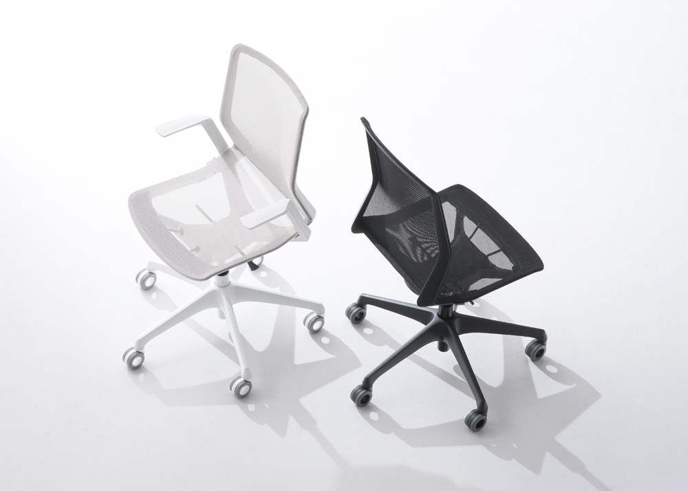 Weight reduction throughout the manufacturing process is linked to energy reduction and reduces environmental impact. Stretching the mesh over the frame reduces weight and achieves strength. It has a simple minimalist reclining mechanism with the appropriate reaction force.