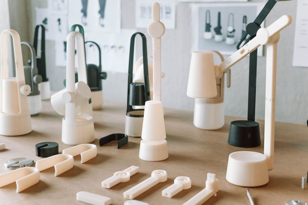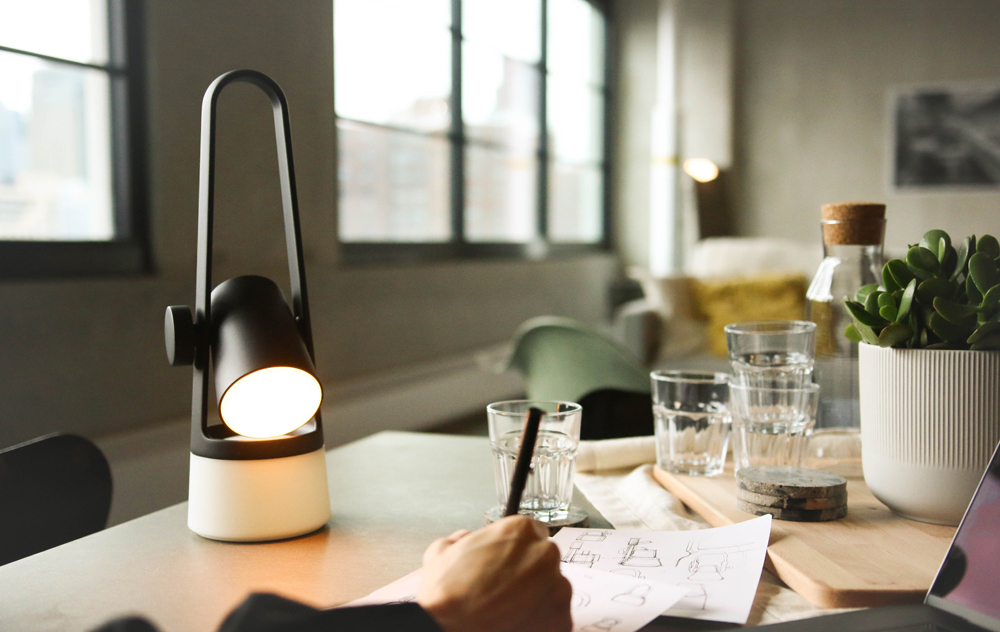 The big knob on the side of the swivel head allows you to aim direct light where you need it. When the head is placed down, it transitions to ambient lighting by diffusing the light through the base. Smart Design surveyed people’s homes to understand how they are using their spaces and where their current lights are located. Designers and strategists noted that work doesn’t always happen in conventional places and identified several use cases for lighting that can serve more than one purpose.