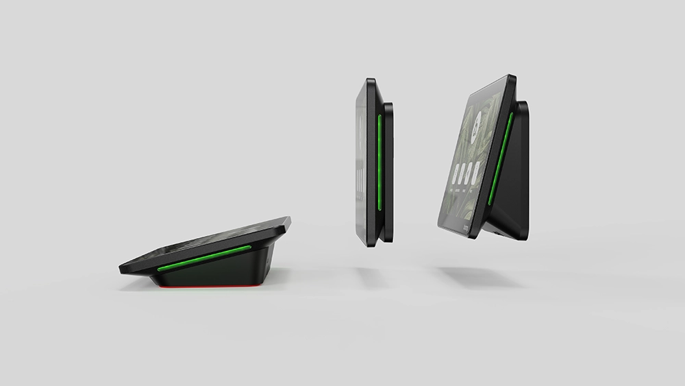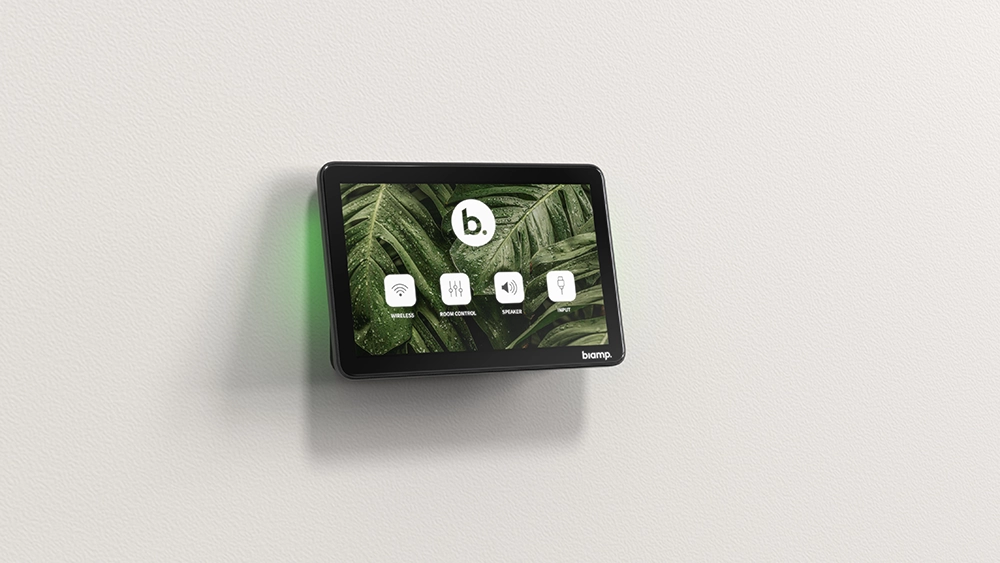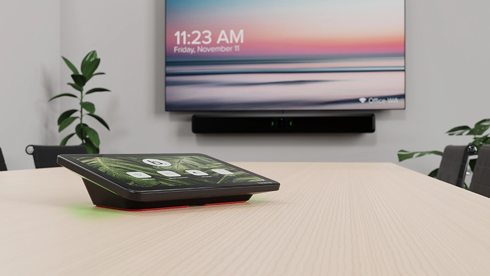 The touchscreen’s form is clean, modern, and striking and fits well with any type of interior design. Sensors activate the screen automatically as someone approaches and adjust the screen brightness based on the ambient light level of the room. Light bars on the sides of the display communicate call status, room availability, etc., to users and meeting participants, enhancing their experience.