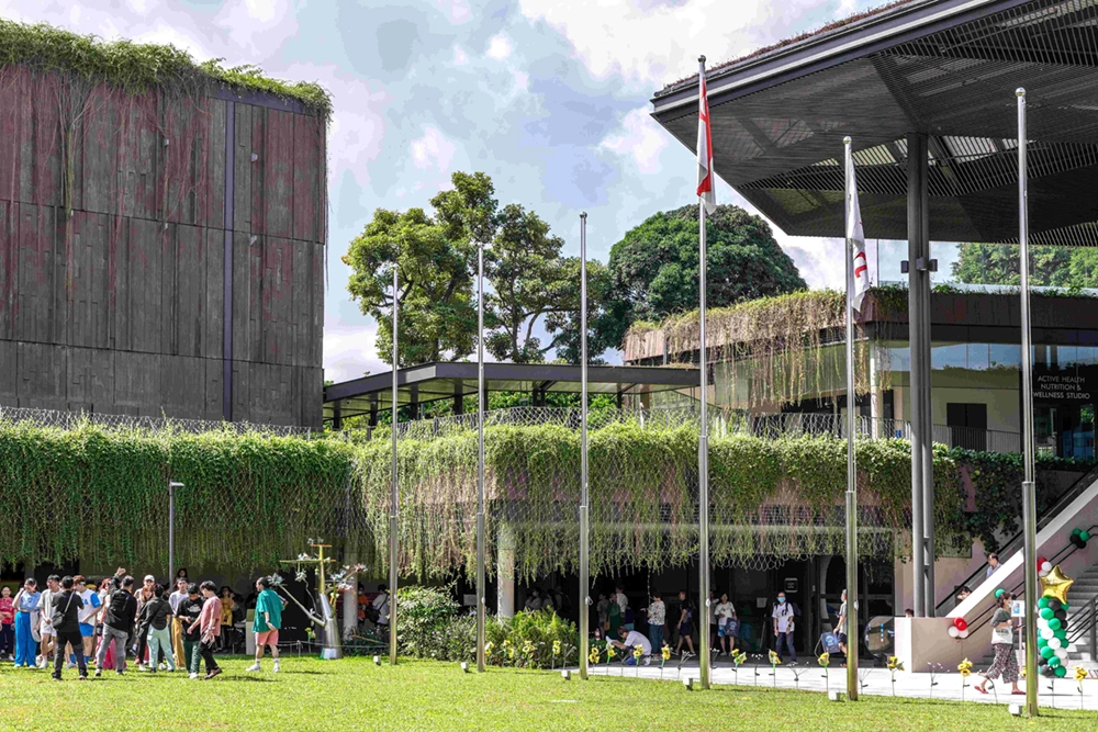 These Active, Beautiful, Clean (ABC) Waters features introduce a series of micro-climates that host a diverse range of flora and fauna, creating a self-sustaining cycle where biodiversity flourishes on the site. Other features include extensive greenery implemented on the building roof to reduce the sun’s heat from entering through the roof and eco-digesters in the hawker centre, constructed with recyclable structural steel, converting food waste into viable fertilisers. The construction adopted a Design for Manufacturing and Assembly (DfMA) approach and low-carbon construction materials.