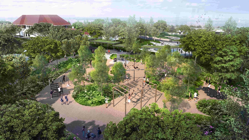 The tree conservation and succession-planting strategies – where more than 40% native and healthy trees are retained, and over 2,050 more native species will be planted – are intended to intensify the site’s green coverage and biodiversity index. The landscape design is zoned into forest, agrarian and hill-top zones with different landscaping strategies to attract biodiversity, create ecological connectivity, integrate stormwater management systems, and provide food and shelter for fauna. Manmade and natural blue spaces reduce urban heat island effect, and support biodiversity of native plants and animals.